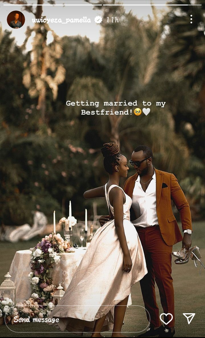 Abinyujije ku rukuta rwe rwa Instagram, Pamella yagize ati “Getting married to my best friend”.  Ubwo yavugaga ibi yashakaga kumvikanisha ko yishimiye kuba agiye kurongorwa n’inshuti ye magara ariyo The Ben.