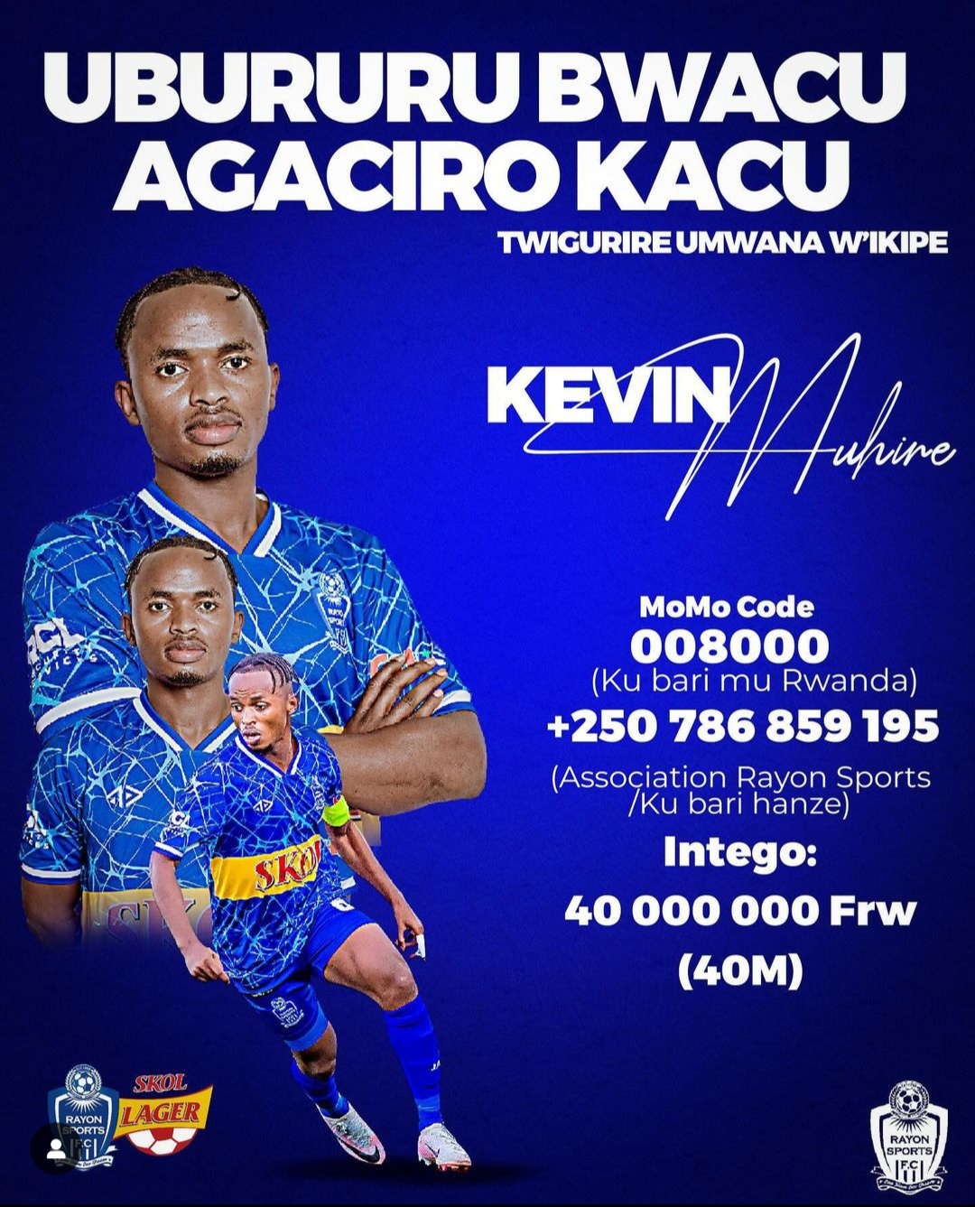 Mu butumwa Rayon Sports yanyujije ku mbuga nkoranyambaga zayo, iyi kipe yasabye abakunzi bayo gukusanya million 40 Frw zisabwa ngo bongere gusinyisha umwana w’ikipe ariwe Muhire Kevin.