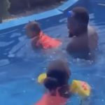 Biteye ubwuzu: uko biba bimeze iyo abana ba Knowless barimo koga muri Piscine bari kumwe na Papa wabo (video)