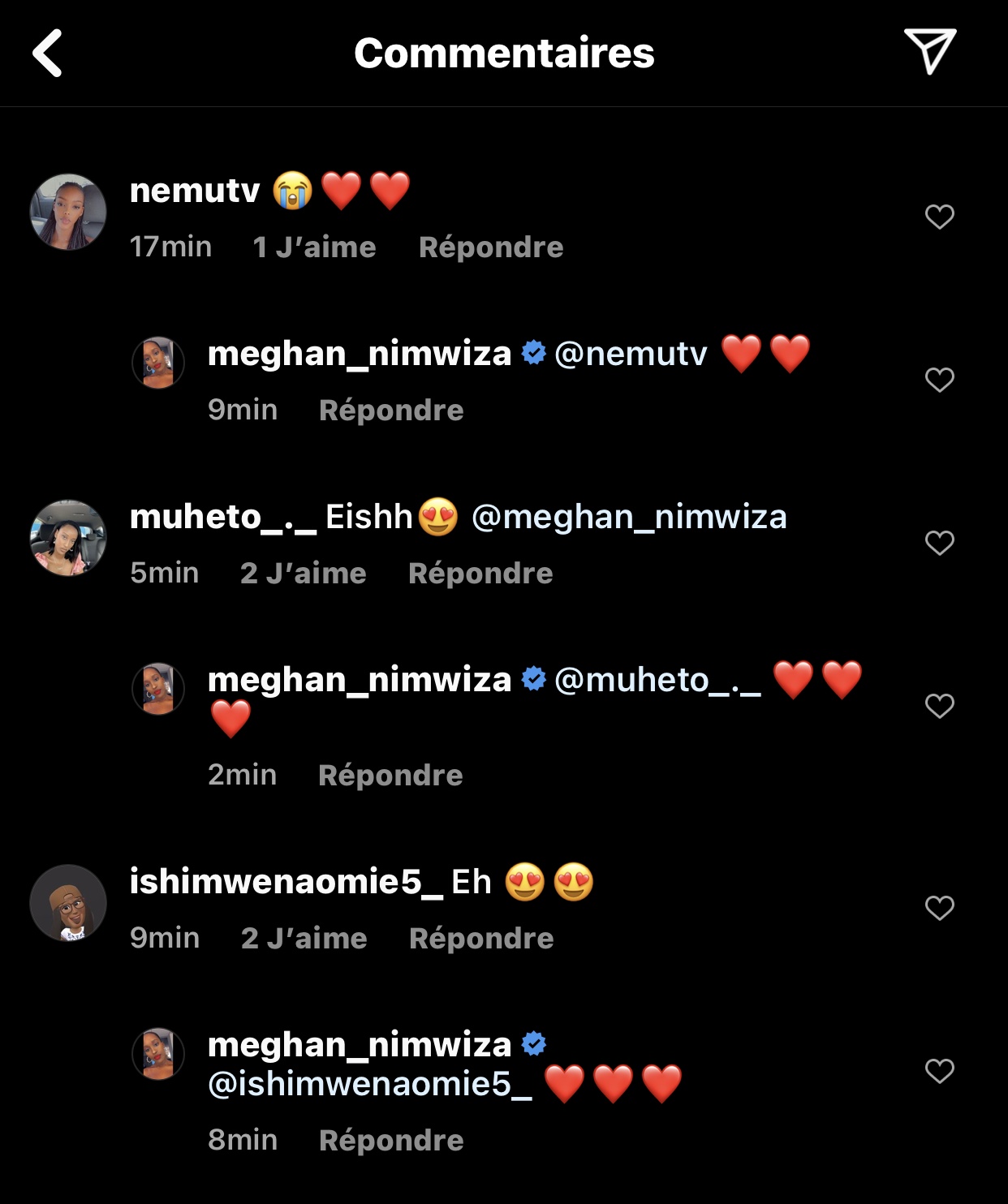Nyuma yuko aya mafoto agiye hanze, aba Miss bagenzi ba Meghan barimo Miss Muheto, Miss Naomie na Miss Sabine nabo bemeye maze batanga ibitekerezo (comments) zigaragaza urukundo bafitiye Meghan.