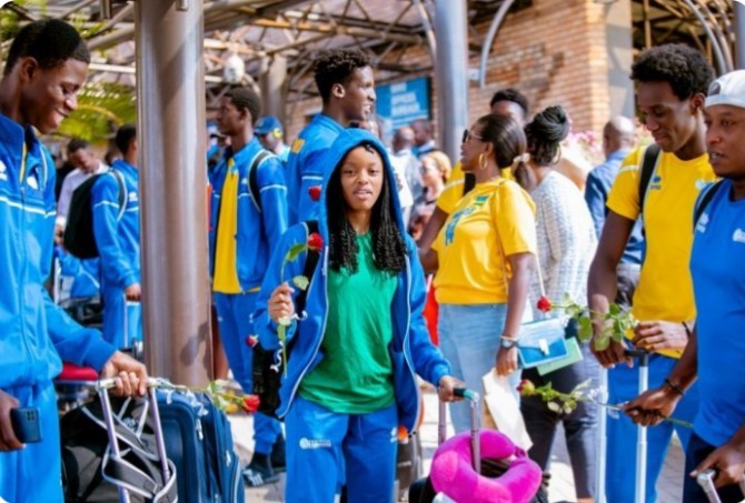 Kuri uyu wa Kabiri, abagize ikipe z’igihugu y’umukino wa Basketball mu ngimbi ndetse n’abangavu batarengeje imyaka 16, bari bitabiriye imikino y’igikombe cy’Afurika “FIBA U16 African Championship 2023”, yaberaga i Monastir muri Tunisia, bagarutse i Kigali amahoro.