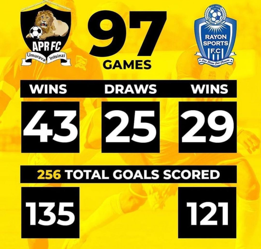 Amakipe akomeye cyane hano mu Rwanda twita ko ayoboye ayandi ahora ahanganye benshi bakunze kuyita Abacyeba amaze gukina imikino 97 kuva zashingwa APR FC imaze gutsinda imikino 43 n’ibitego 135.