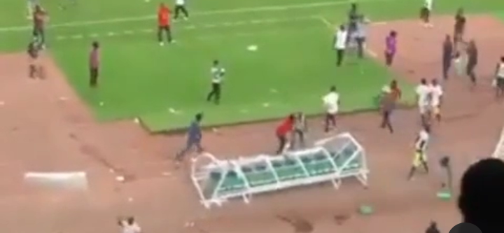 Nyuma yo gusezererwa kuri sitade ya bo abafana ntago babyiyumvishije, ahubwo bahise bashoka mu kibuga batangira kwangiza ndetse ari nako batangira gutwika ikibuga.