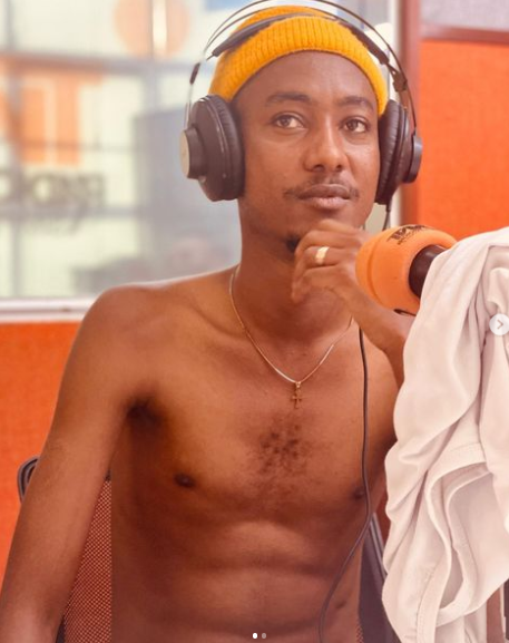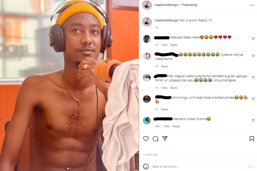Mu ifoto yashyizwe hanze na Kibonge ubwo yari mu kiganiro kuri Radio10, aho yari yakuyemo ishati aho agatuza ke abenshi bamusererejeho kari hanze kose.