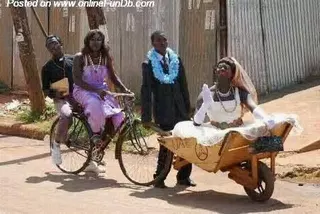 Umugeni mu gihugu cya Zimbabwe yagiye gusezerana yahetse umugore we mu ngorofani agenda amusunika umugore yicaye umugabo asunika bagenda banyura mu bantu aho baciye induru bakayiha umunwa.