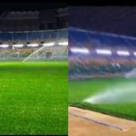 Ubwatsi bw’ubukorano bugezweho bwashyizwe muri stade Amahoro, batangiye kubutera amazi, bisanzwe bikorwa nko muri stade z’iburayi – VIDEWO