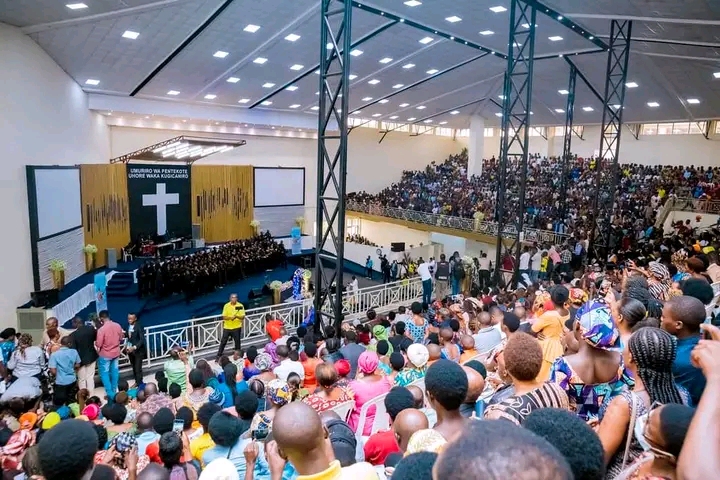 Abaje nyuma babuze aho bajya! Imbaga y’abantu baje guherekeza Pastor Théogene buzuye urusengero ndetse no hanze baruzura biba ngombwa ko bafunga imiryango (Amafoto)