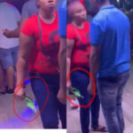 Umugore yitwaje ikirahure k’icupa kugirango umugabo we atareba abandi bakobwa muri bar – video