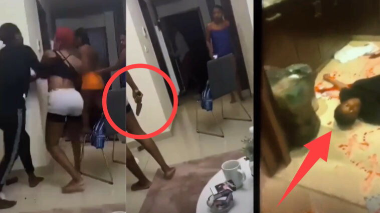 Mu mashusho yasakaye hose ku mbuga nkoranyambaga, umukobwa yateye icyuma mugenzi we aziko ari kukimukangisha gusa birangira bamwishe.
