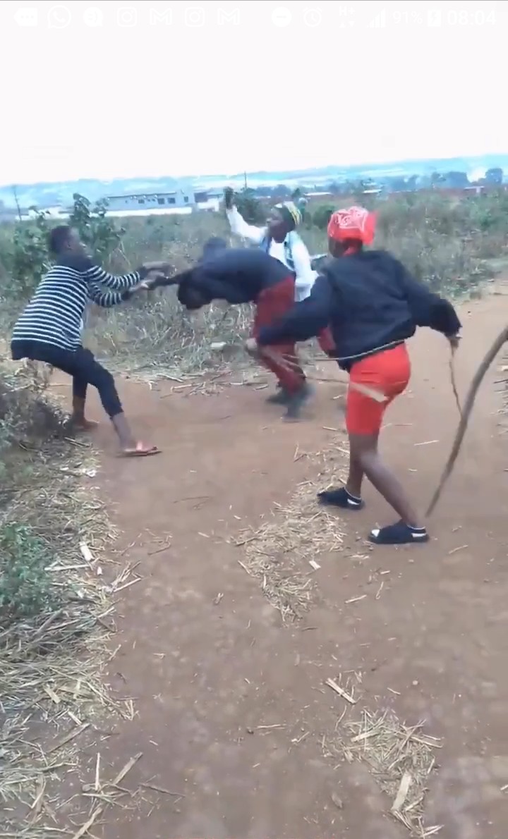 Abakobwa bararakaye! Video y’abakobwa bateze umuhungu bakamucira inkoni bakamukubita nk’abica inzoka