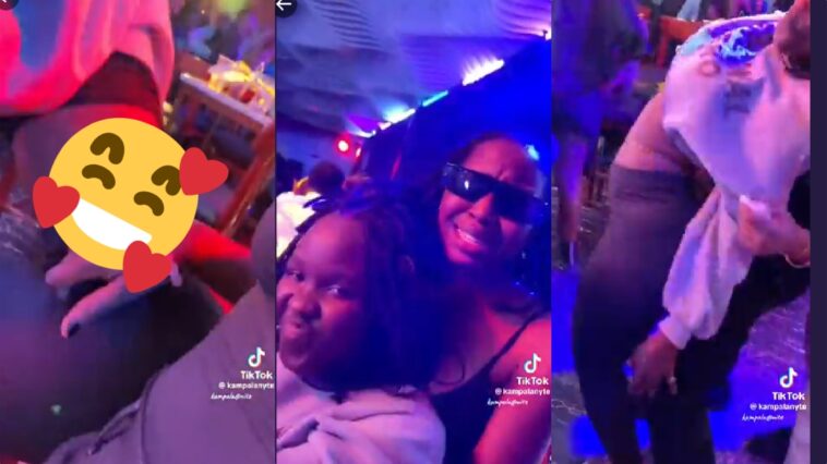 Abakobwa bari abacyera! Umukobwa yabyinishije mugenzi we imbyino zo kumanuka uzamuka zimenyerewe ku basore na bakobwa bari gutara ubushagarira (VIDEWO)