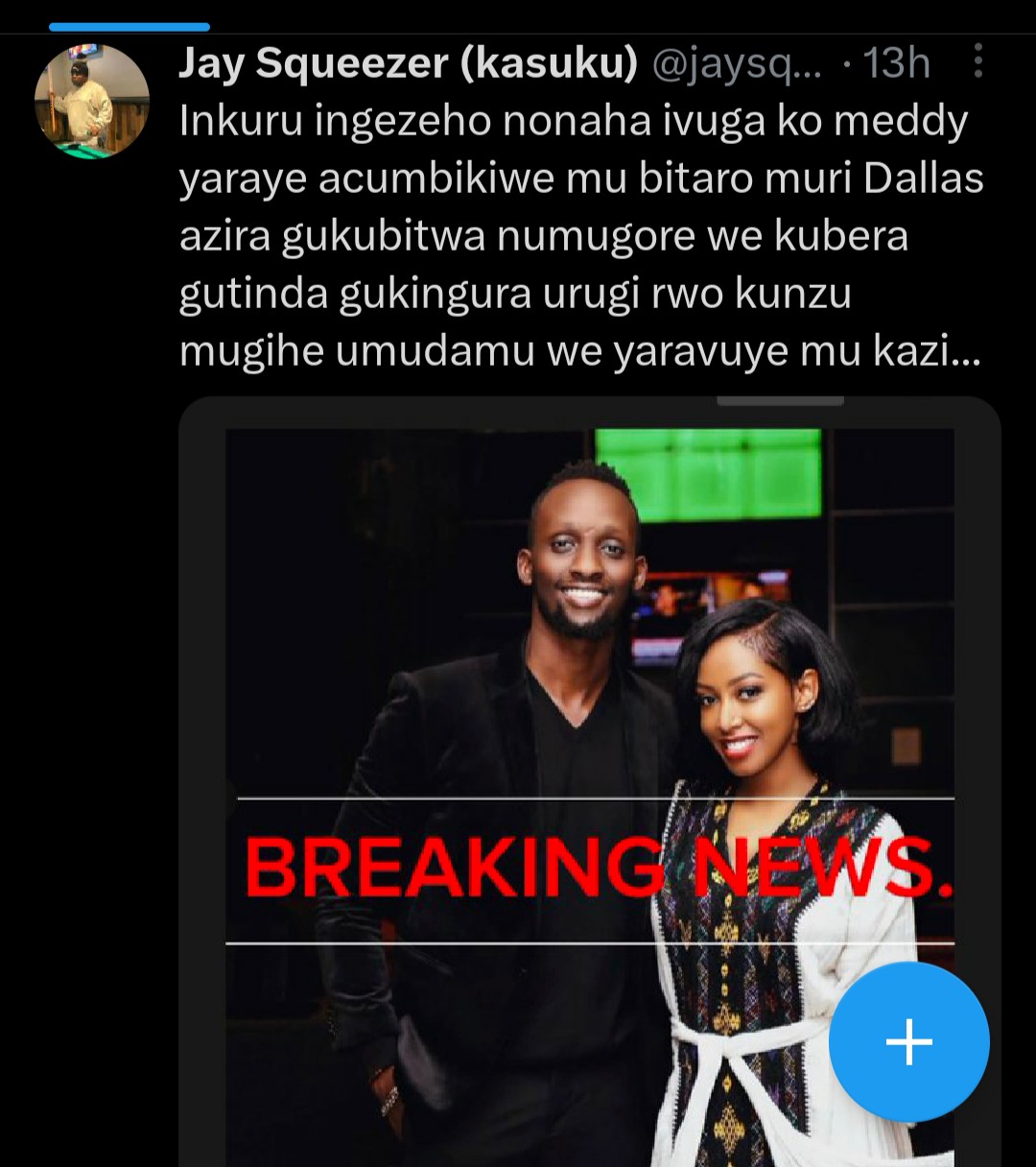Abo kuri X yahoze yitwa Twitter bakiriye nabi amakuru yatangajwe na Kasuku, aho yavuze ko Meddy yaraye mu bitaro nyuma yo gukubitwa n’umugore we.