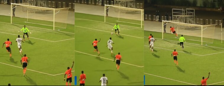 Amashusho y’umupira Mbaoma yari arobye umuzamu ariko myugariro Bucyocyera Karenzi Djamardine wa Gasogi United akawukuramo utararenga umurongo: