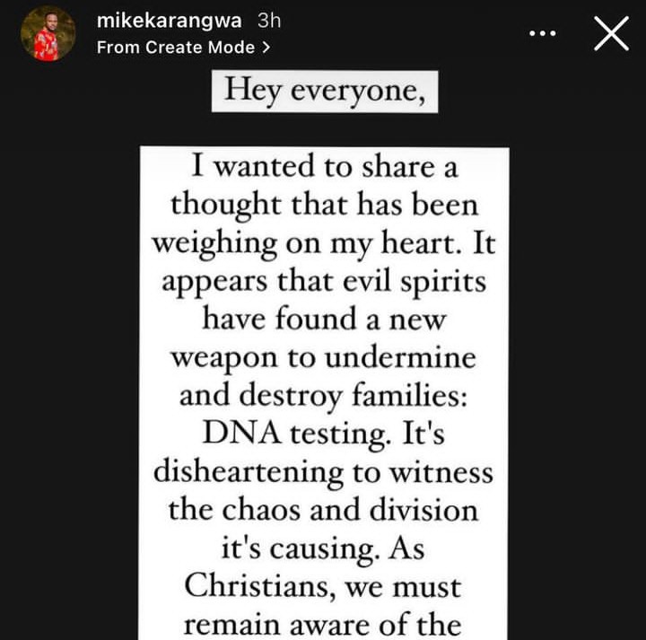 Gusa ariko Mike Karangwa wamamaye mu itangazamakuru ry’imyidagaduro we yatangaje ko asanga ari umudayimoni wateye mu bantu muri iyi minsi, wifuza gutandukanya imiryango yifashishije ingingo yo Gupimisha uturemangingo ndangasano ‘DNA’.