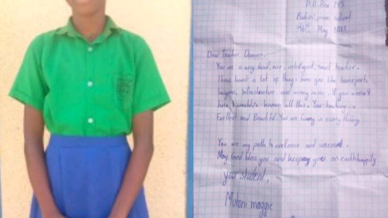 Muri uru rwandiko, Mutoni Maggie yagize ati: “Kuri mwarimu nkunda Damien; Uri umugwaneza, uri mwiza kandi uri umuhanga ndetse ukaba mwarimu uhora akeye. Nukuri nakwigiyeho byinshi cyane birimo ‘Ubwikorezi, imigemo, ibikorwa remezo ndetse n’ibindi.