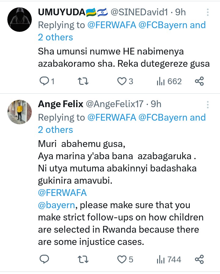 Nyuma yuko Ferwafa ishyize hanze videwo y’abana bivugwa ko bafite imyaka 12 ndetse ko aribo batoranyijwe ko bagomba gukina mu kademi ya Buyern Munich y’abatarengeje 12, ubu abantu bariye karungu kubera ukuntu bakomeje kubona ari bakuru.