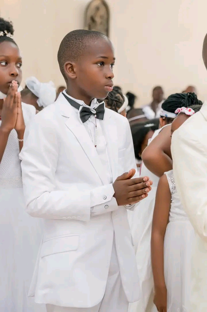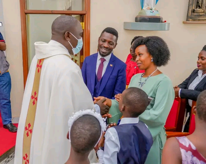 Bobi Wine yagize Ati:“Uyu munsi, kuri Paruwasi ya Mutagatifu Gonzaga Gonza Kamuli Naalya, Abana bacu Suubi na Shadrack babonye amasakaramentu ya Batisimu na Ukaristiya.”