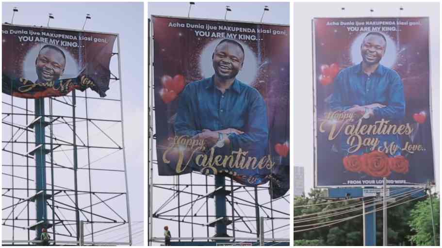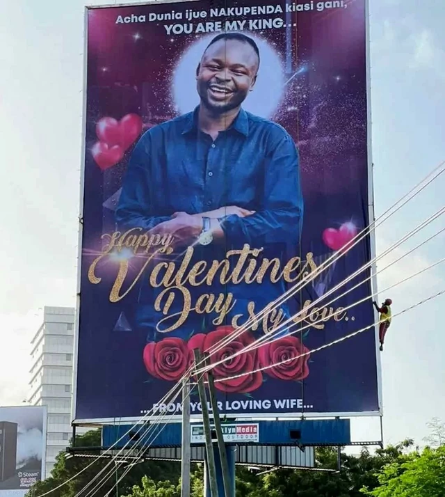 Uyu mugore w’abana 3, yifashishije kompanyi izobereye mukumanika ibyapa muri Tanzania, iki cyapa cyamanitswe mu mujyi wa Dar Salaam mu ijoro ryo ku italiki ya 13 Gashyantare 2022 atungura umugabo we mu gitondo cyo ku italiki ya 14 Gashyantare ku munsi abantu benshi bizihizaho umunsi wa Saint Valentin wahariwe abakundana.
