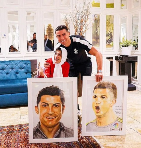 Muri urwo rugendo rwa Al Nassr, Cristiano Ronaldo yahuye n’abafana be benshi barimo n’Umunya-Iranikazi, Fatima Hamimi, wari ufite impano y’ibishushanyo yageneye Cristiano Ronaldo.