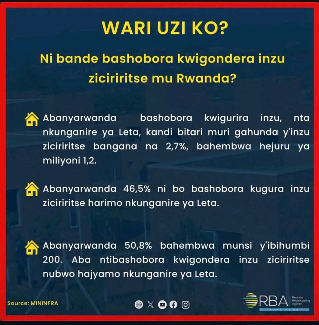 Abanyarwanda 50,8% ntibashobora kwigondera inzu ziciriritse kabone niyo Leta yabameneramo nkunganire