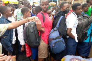 Muri Gare ya Nyabugogo i Kigali hakomeje kugaragara umubyigano w’abagenzi benshi, watewe n’abanyeshuri bakererewe kujya ku ishuri.