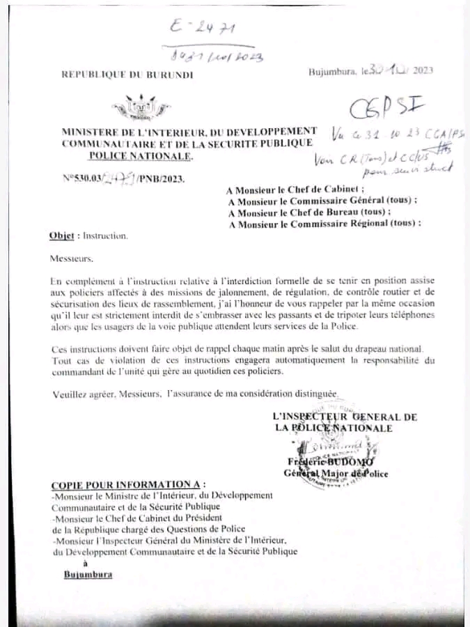 Ibyo biri mu itangazo ryasohowe n’umugenzuzi wa Polisi mu Burundi, General Major de Police Frédéric Budomo.