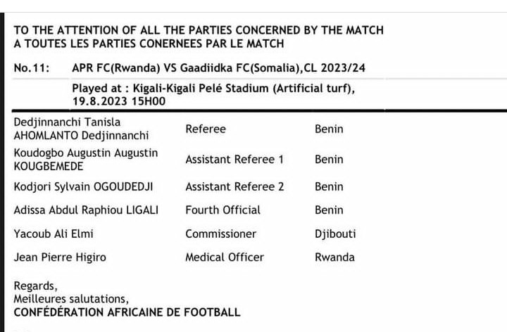 Mu basifuzi bazasifurira ikipe ya Apr Fc ku mukino w’ambere wa CAF Champions League harimo 4 bo muri Benin, umwe wo muri Djibouti n’umwe wo mu Rwanda nkuko bigaragara kuri lisite ikurikira.