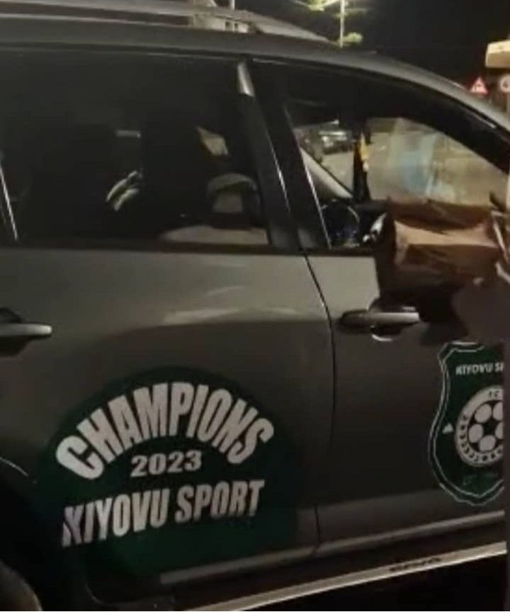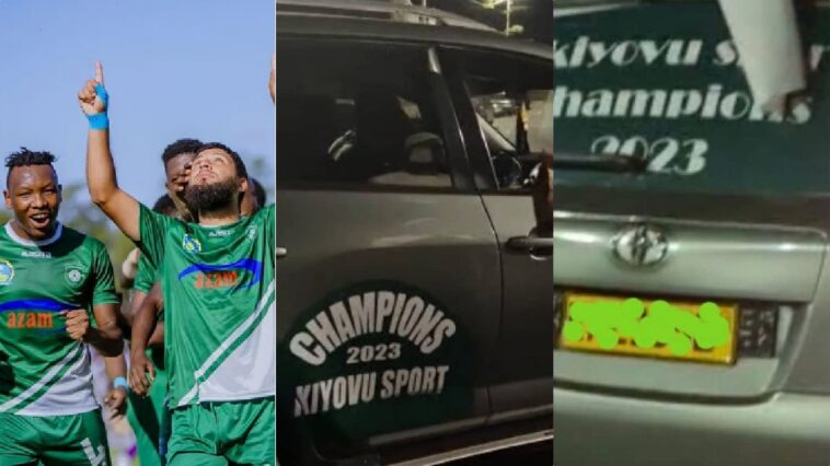Bamwe mu bafana b’iyi kipe iyoboye urutonde rwa shampiyona, bari kuzenguruka mu mujyi batwaye imodoka zanditseho ko begukanye igikombe cya shampiyona ya 2022-2023.