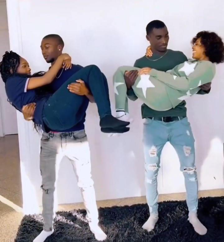 Mu bihugu by’abaturanyi hagaragaye abasore babiri bashatse kwemezanya bagaterura aba sheri babo, bakareba umara igihe kinini akimuteruye.