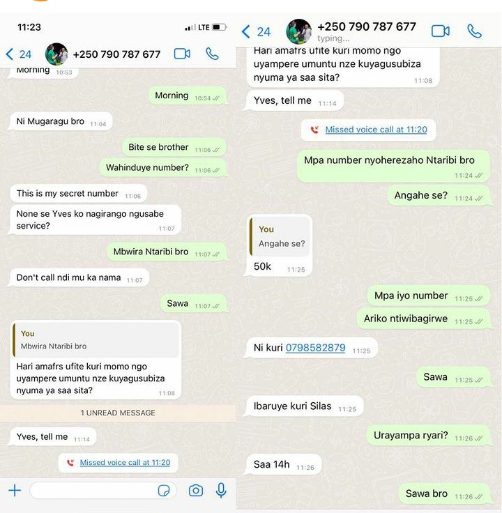 Nkuko bigaragara mu kiganiro uwo mutubuzi yagiranye n’uwo yatuburiye, uwo mutubuzi yafashe nimero ya WhatsApp ashyiraho ifoto ya Mugaragu ndetse yandikaho ko yitwa Mugaragu.
