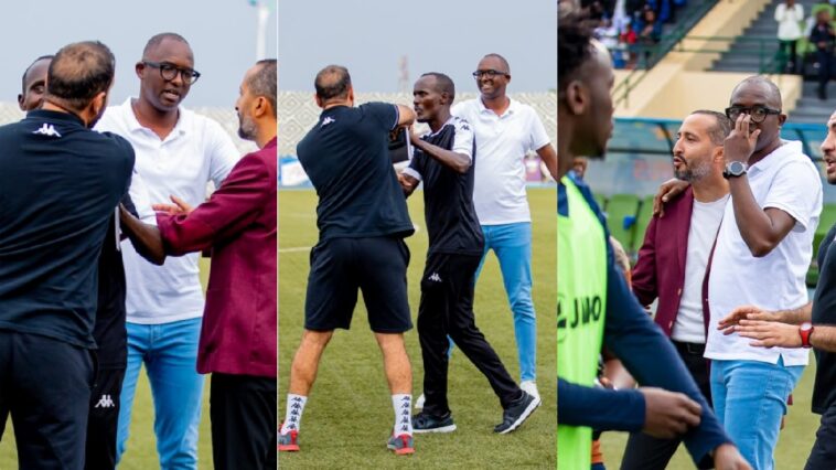 Abatoza bungirije ba APR FC bakozanyijeho n’abungiriza ba Rayon Sports maze Haringingo Francis arabunga, nyuma yo guterana amagambo ku mpande zombi maze batangira gufatana mu mashati bituma babaha amakarita y’umuhondo.