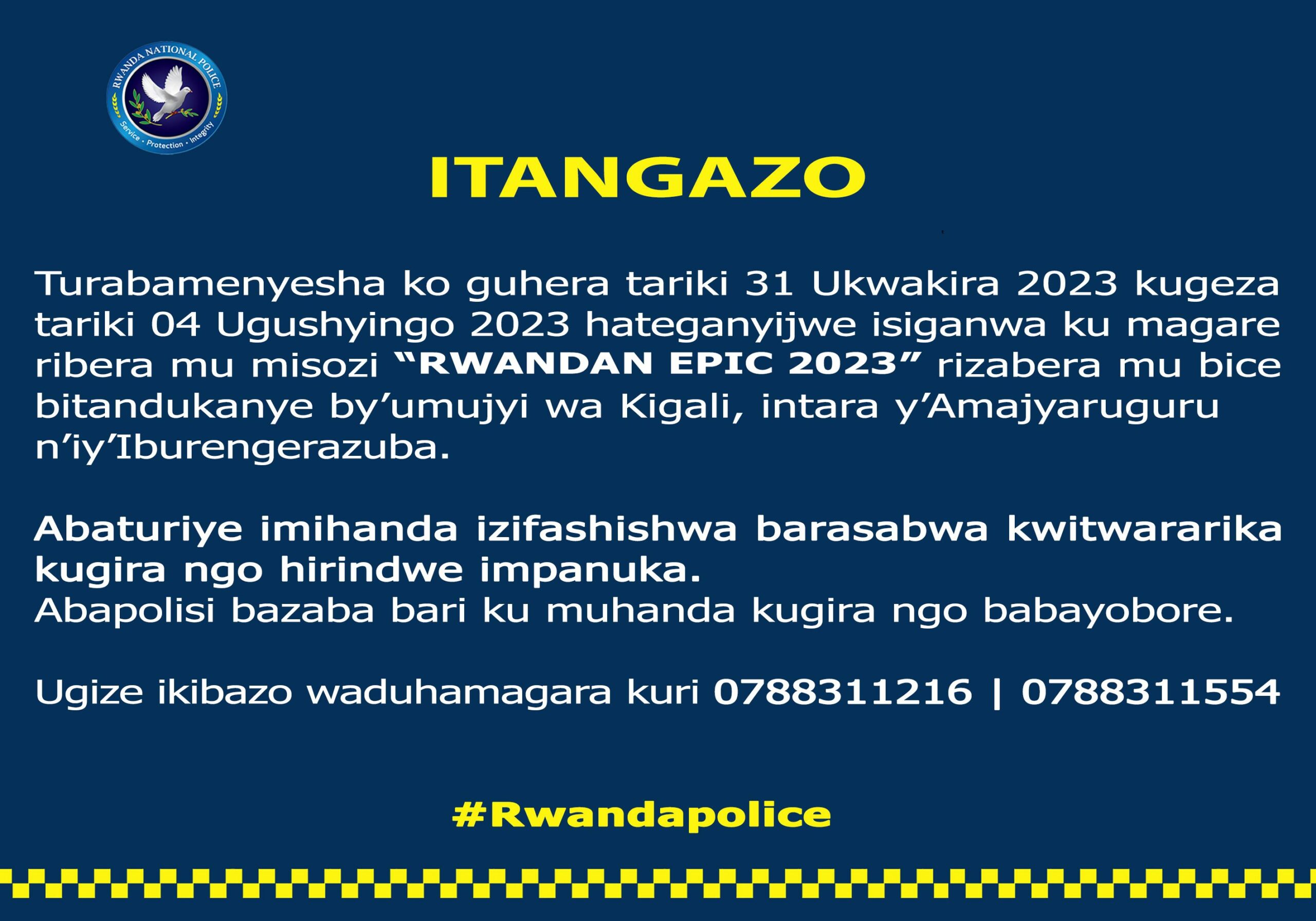 Polisi y’Igihugu yatangaje ko abatuye n’abagenda mu mihanda yo mu mujyi wa Kigali, mu ntara y’Amajyaruguru no mu Burengerazuba basabwe kugenda bitwararitse guhera tariki 31 Ukwakira 2023.
