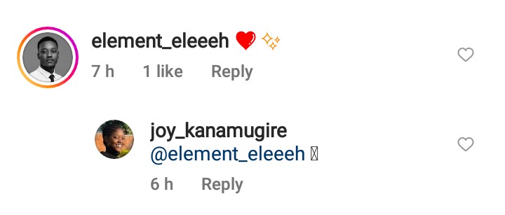 Uyu mukobwa uvukana na Element, yasangije abamukurikira amafoto ku rukuta rwe rwa Instagram, nyuma y’akanya gato cyane, musaza we ahita aza ahatangirwa ibitekerezo maze ashyiraho akamenyetso k’agatima.