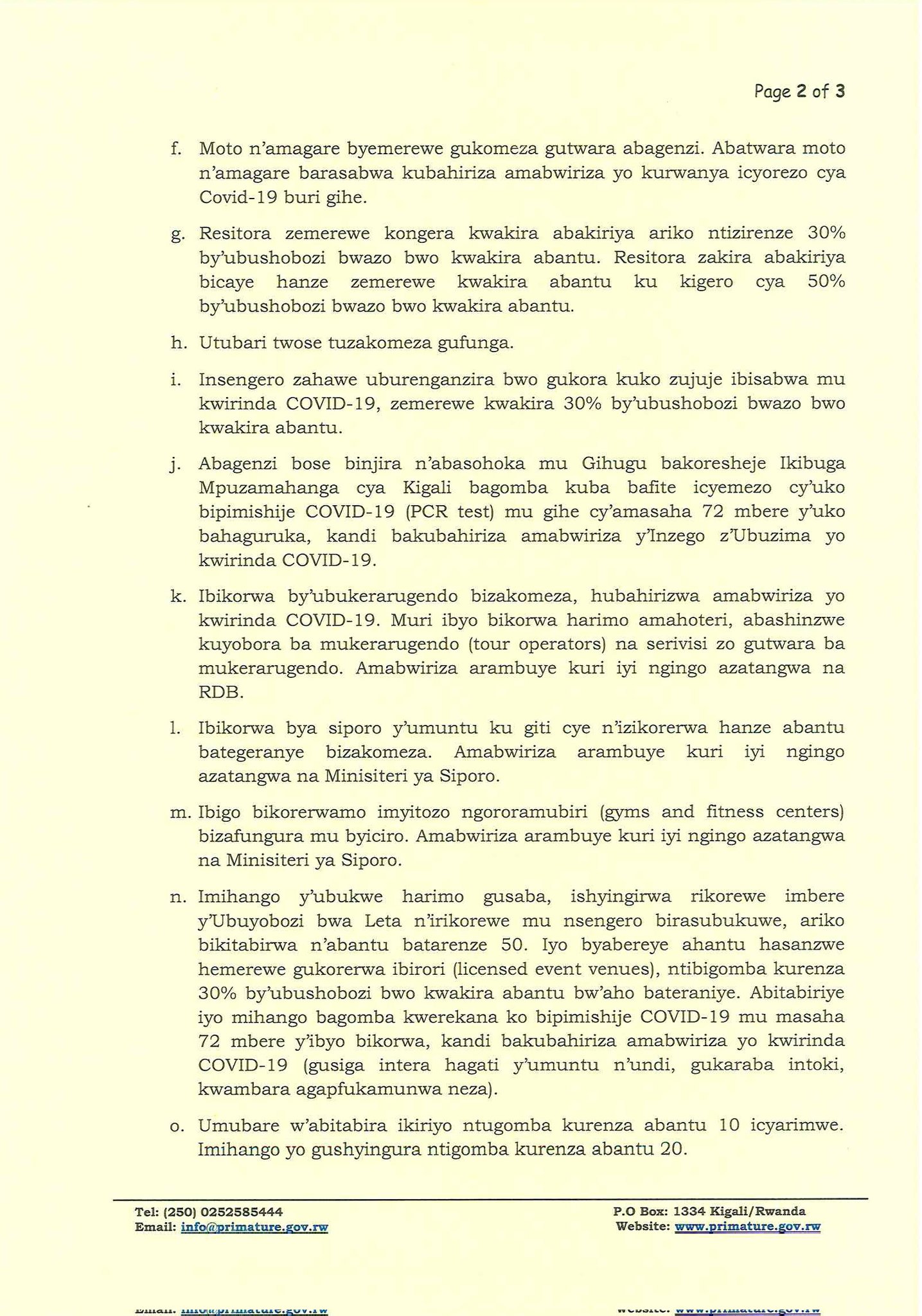 Ni nyuma yuko imyanzuro y’inama y’abaminisitiri yo ku munsi w’ejo tariki ya 11 Kanama 2021 yaraye isohotse harimo ingingo ivuga ko imihango y’ubukwe irimo gusaba ndetse n’ishyingirwa mu nsengero no mu mategeko yemerewe kwitabirwa n’abantu batarenze 50. Iyo byabereye ahantu hasanzwe hemerewe gukorerwa ibirori ntibagomba kurenga 30% by’ubushobozi bwo kwakira abantu bw’aho bateraniye kandi abitabiriye ibi birori bagomba kwerekana ko bipimishije covid-19 mu masaha 72 mbere y’ibyo bikorwa.