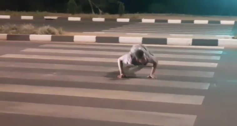 Nkuko iyi videwo ibigaragaza, uyu musore  yambutse umuhanda nkuko abandi bagenzi bambuka umuhanda hanyuma ageze hagati muri zebra crossing atera pompage arongera arahaguruka akomeza urugendo.