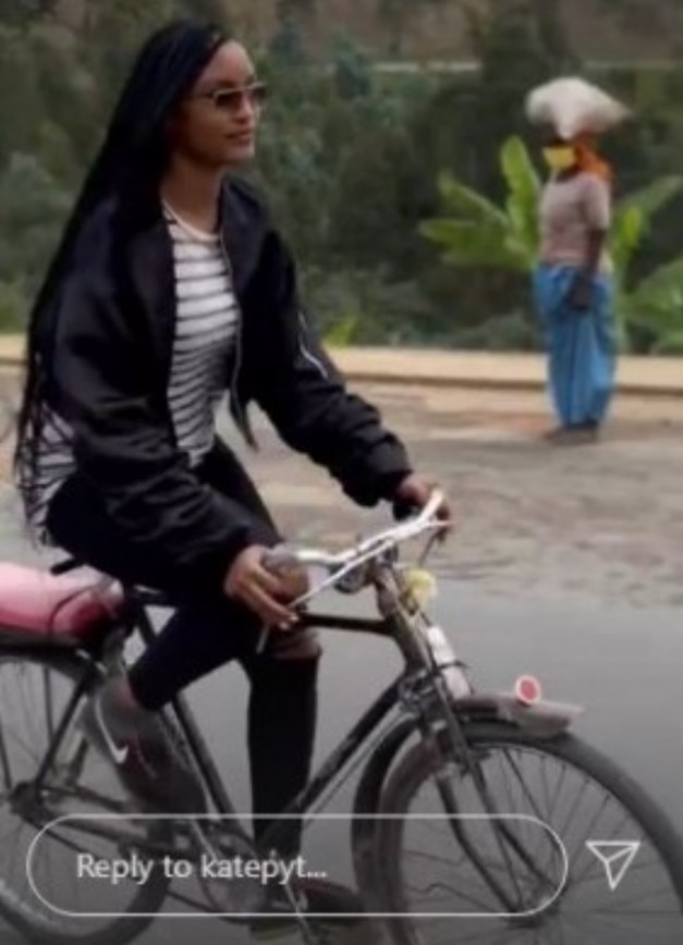 Miss Naomie yagaragaye ari ku igare bakunze kwita Matabaro, ni nyuma y’iminsi mike umunyamideri Kate Bashabe nawe agaragaye ari kirinyonga.