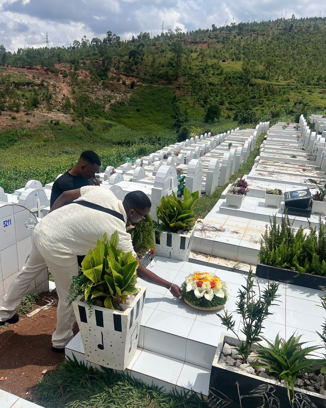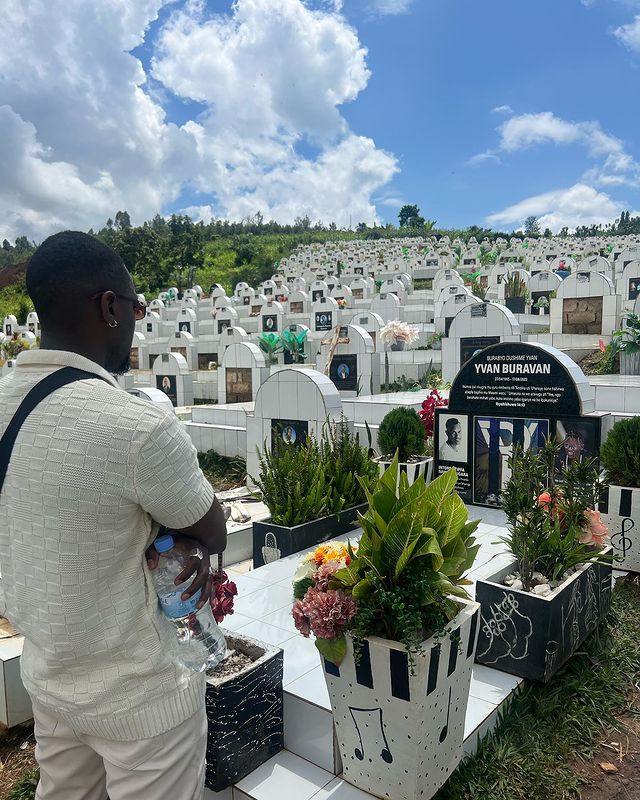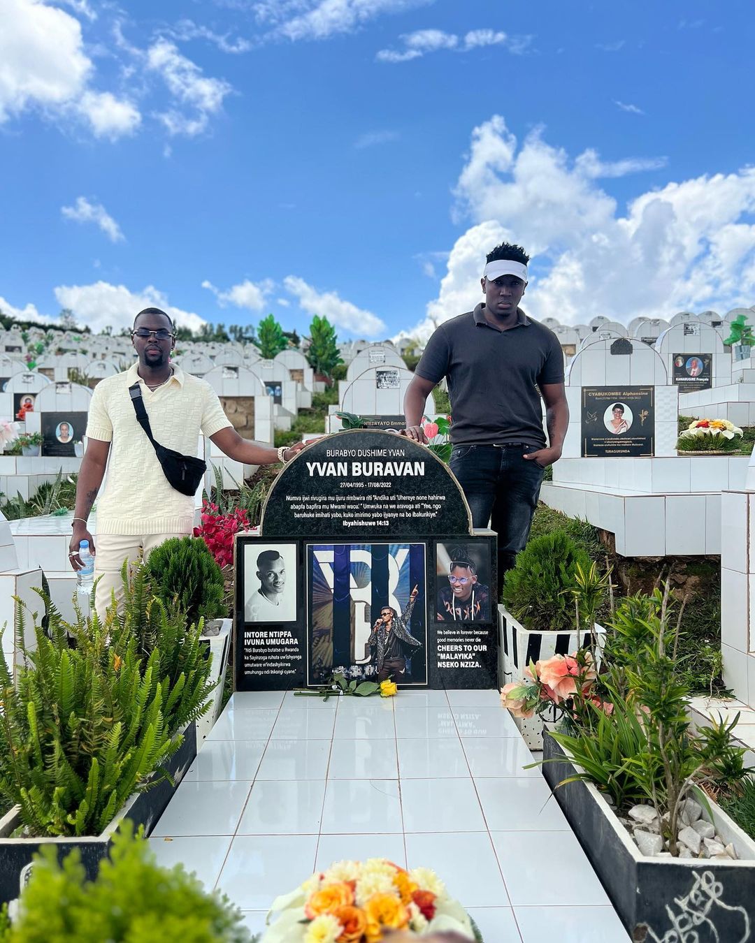 Shaffy wari uri kubarizwa mu Rwanda, yashyize indabo ahashyinguwe Yvan Buravan witahiye umwaka ushize.