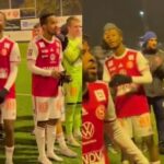 Byiringiro Lague na Yannick Mukunzi bari kumwe n’abakinnyi bakinana muri Sandviken IF, mu byishimo byinshi bishiye insinzi y’ubwinshi bw’ibitego batsinze ikipe bari bahanganye