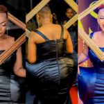 Bianca Baby yaserutse mu birori bye yambaye ikadire ifashe ku ikanzu ifite amataye manini (Amafoto)