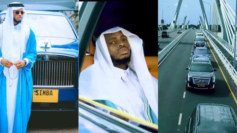 Aho anyuze ugira ngo ni perezida w’igihugu: Mu modoka ye nziza cyane Diamond Platnumz agenda mu muhanda arinzwe bikomeye cyane n’izindi modoka nyinshi – VIDIO