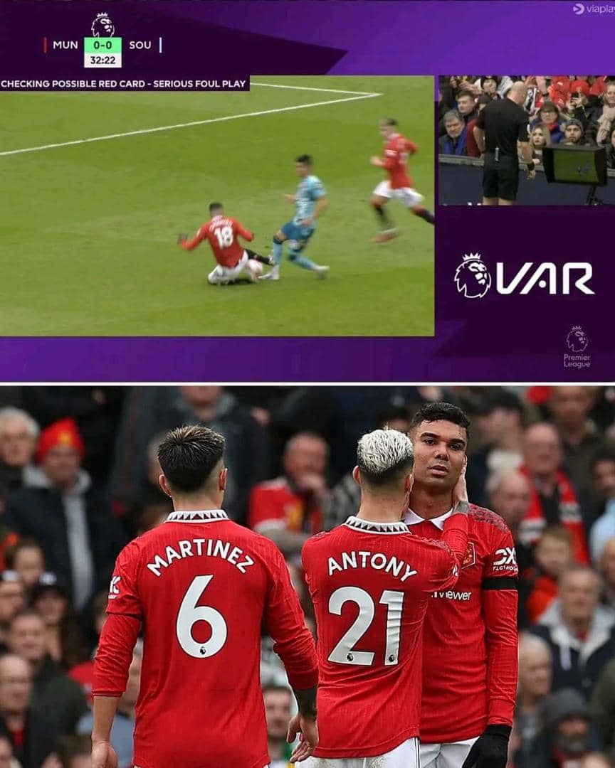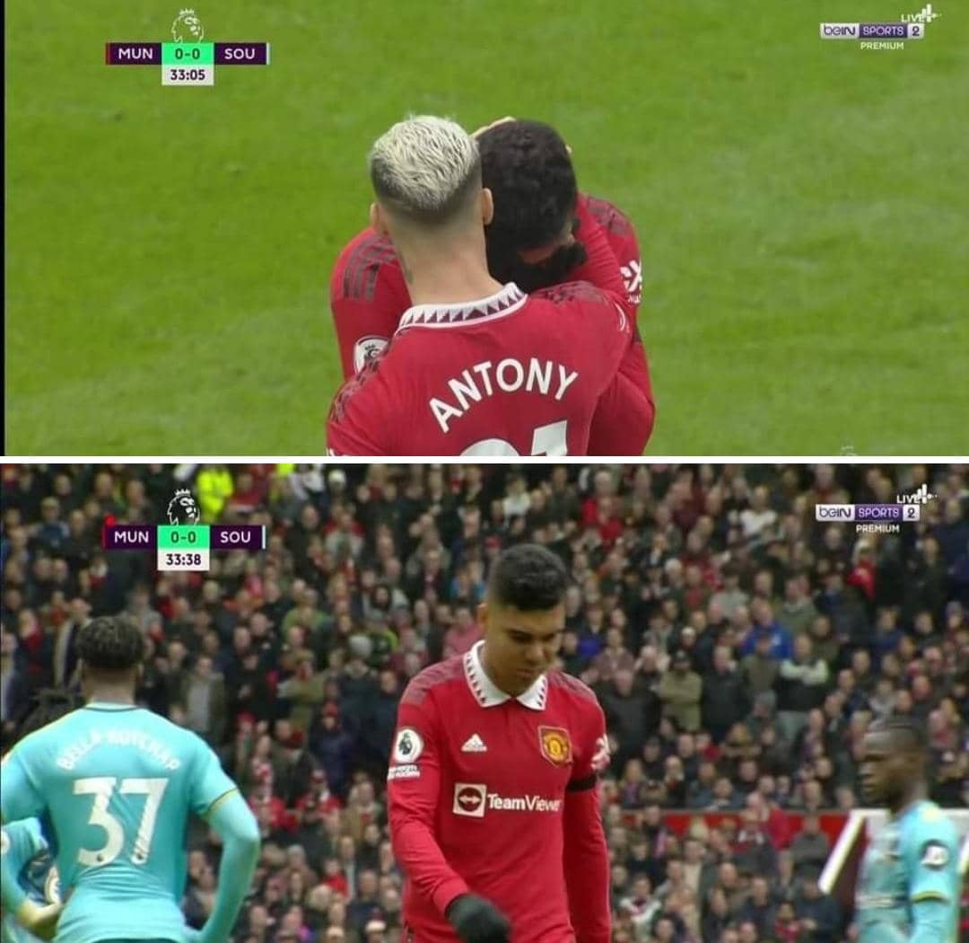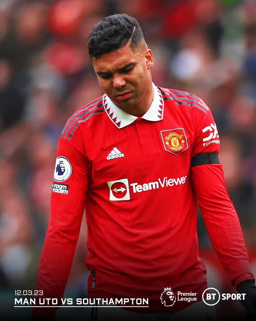 Casemiro yabonye ikarita itukura mu gice cya mbere cy’umukino Manchester United yahuragamo na Southampton.
