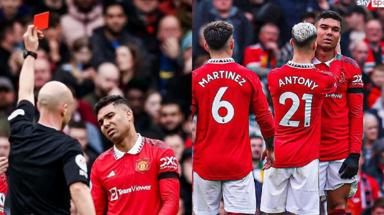 Umukinnyi wo hagati ukina yugarira, Casemiro yabonye indi karita itukura nyuma y’iminsi mike avuye mu bihano by’ikarita itukura yari yabonye ku mukino wa Crystal Palace.