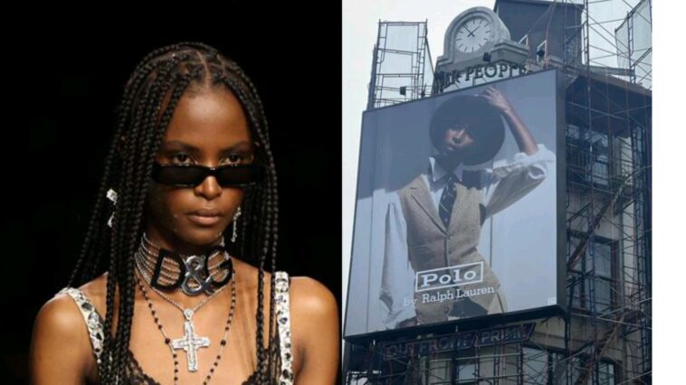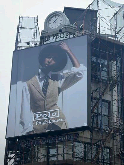 Ifoto yagiye hanze igaragaza Munezero ari kuri ‘screen’ zamamarizwaho muri Amerika, agaragara ari kwamamaza imyambaro yakozwe na Polo Ralph Lauren.