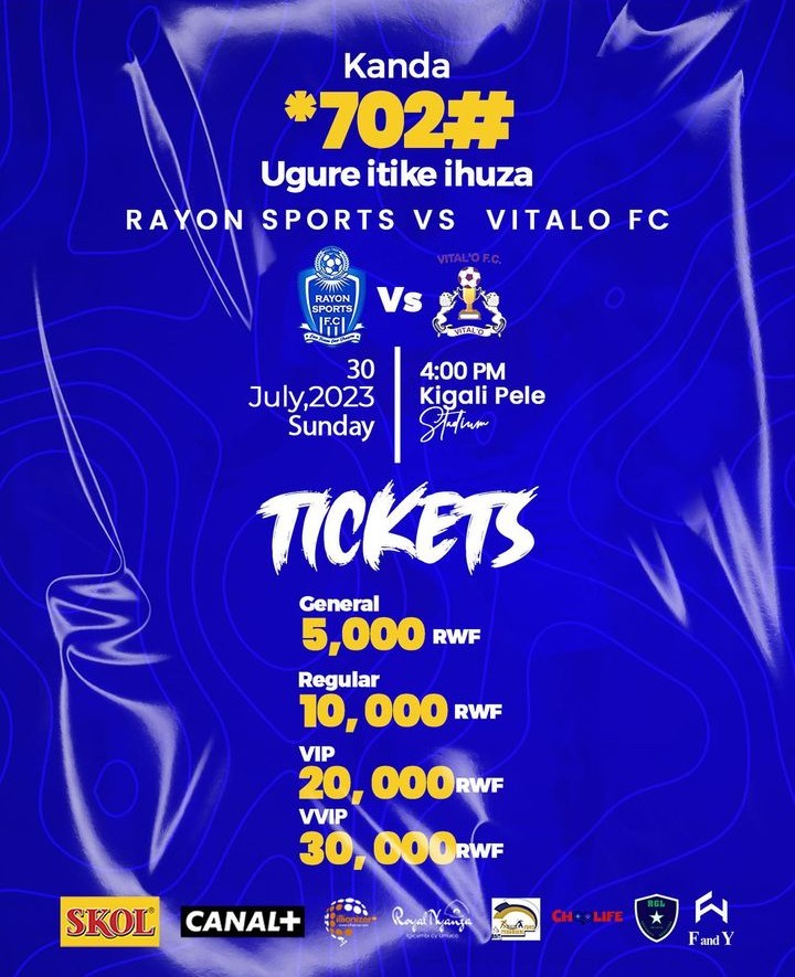 Itike ya make kuri uyu mukino ni ibihumbi 5 Frw, iya menshi ni ibihumbi 30 Frw.