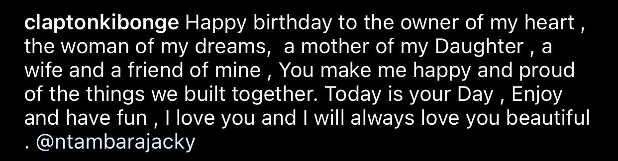 Umunyarwenya Clapton Kibonge abinyujije ku rukuta rwe rwa instagram yifurije isabukuru nziza umugore we.