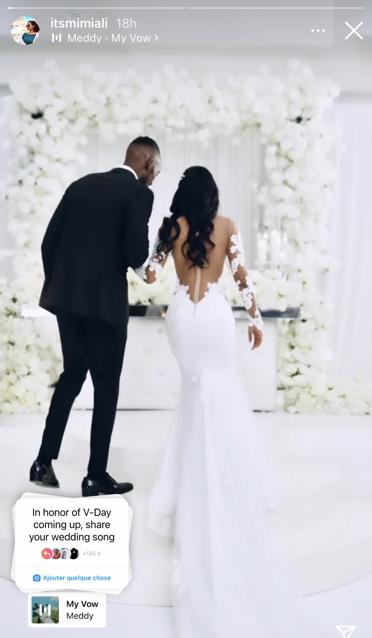 Mimi yifashishije ifoto ari kumwe na Meddy, ifoto yafatiwe mu bukwe bwabo, maze ayiherekesha indirimbo My Vow ya Meddy nuko ayisangiza abamukurikira kuri instagram.