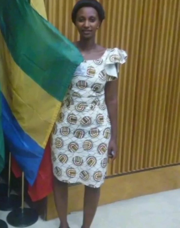 “Akoshe Mana wari keza” Ifoto ya Mutesi Scovia akiri umukobwa muto, afashe ku idarapo ry’igihugu nk’umuntu ugiye kurahira, ikomeje gutitiza imbuga nkoranya [IFOTO]