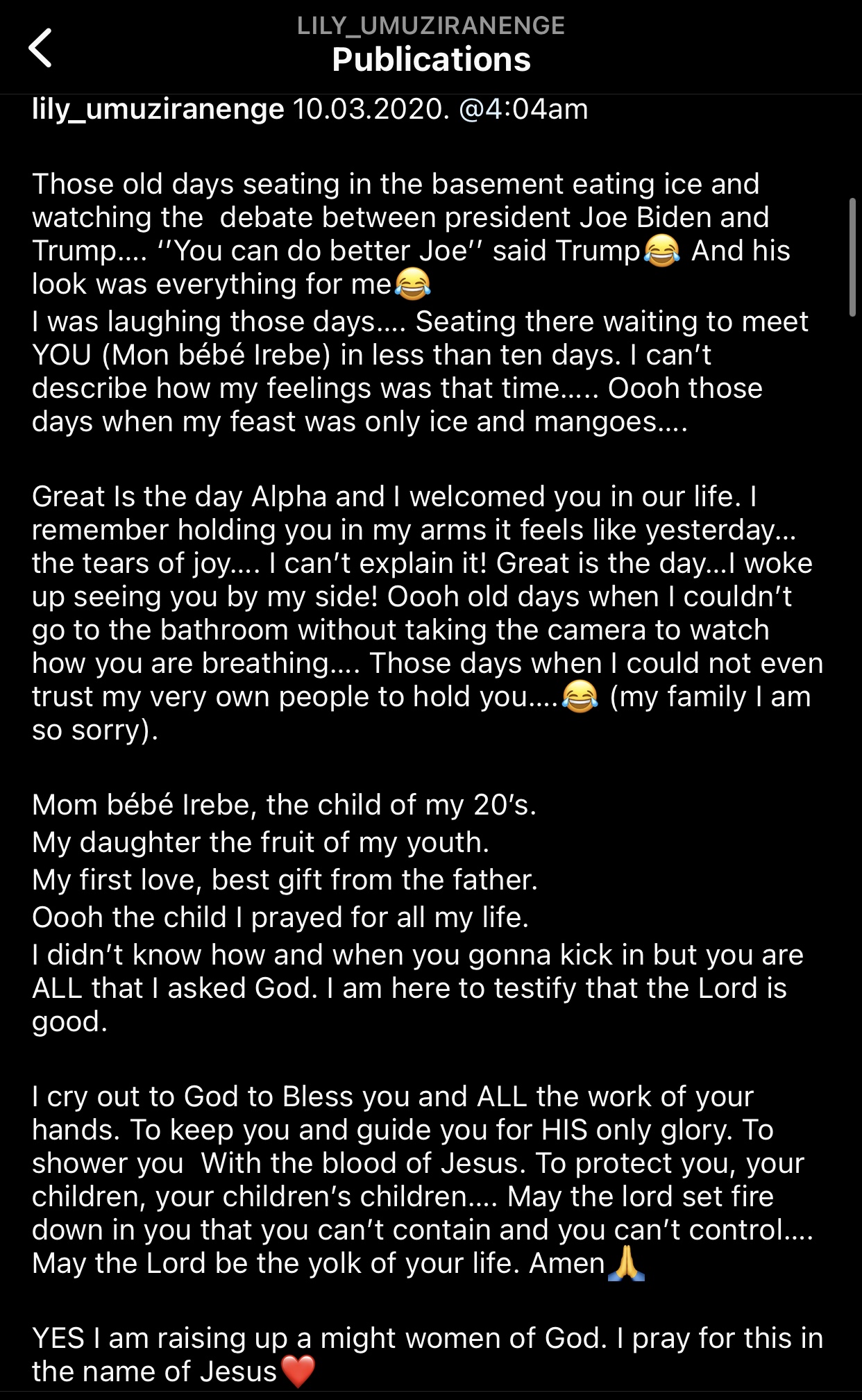 Kuri uyu wa 03 Ukwakira nibwo umwana w’imfura wa Alpha Rwirangira na Liliane Umuziranenge yizihije isabukuru y’umwaka umwe amaze avutse. Liliane abinyujije ku rukuta rwe rwa instagram yatangaje amagambo yiganjemo ayo gushima Imana ndetse anasoza yifuriza umwana we isabukuru nziza mu magambo agira ati « Happy birthday my Love ❤️».