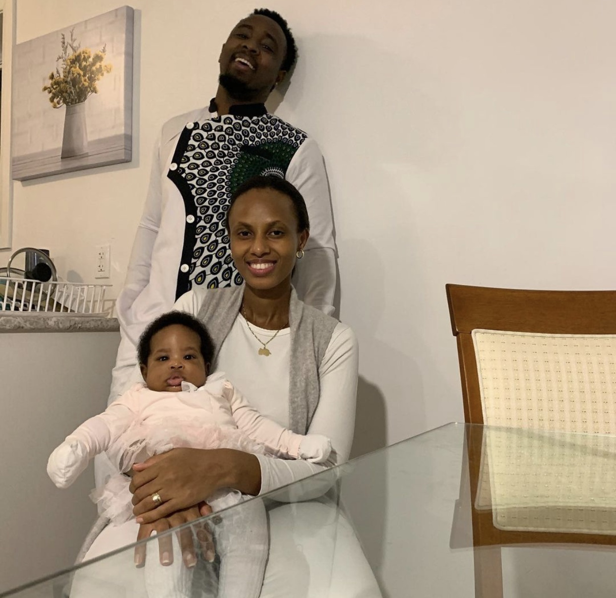 Alpha Rwirangira n’umugore we kuri ubu bafitanye umwana umwe