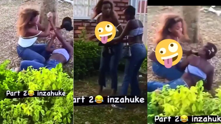 Hari amashusho yabanje gusakara agaragaza aba bakobwa bari ku rwana maze barabakiza, gusa nyuma bongeye gusubiranamo barwana ubugira 2.
